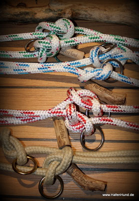 Die Preise richten sich immer nach Tausorte, Tauwerkstärke, Messing oder Edelstahl, was für eine Schließe und fallen somit für jede Halsung individuell aus.